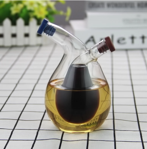 Double Layer Sauce Oil Bottle 2 In 1 Vinegar Glass Bottle Condiment Seasoning Sealed Kitchen Storage Bottles Jars