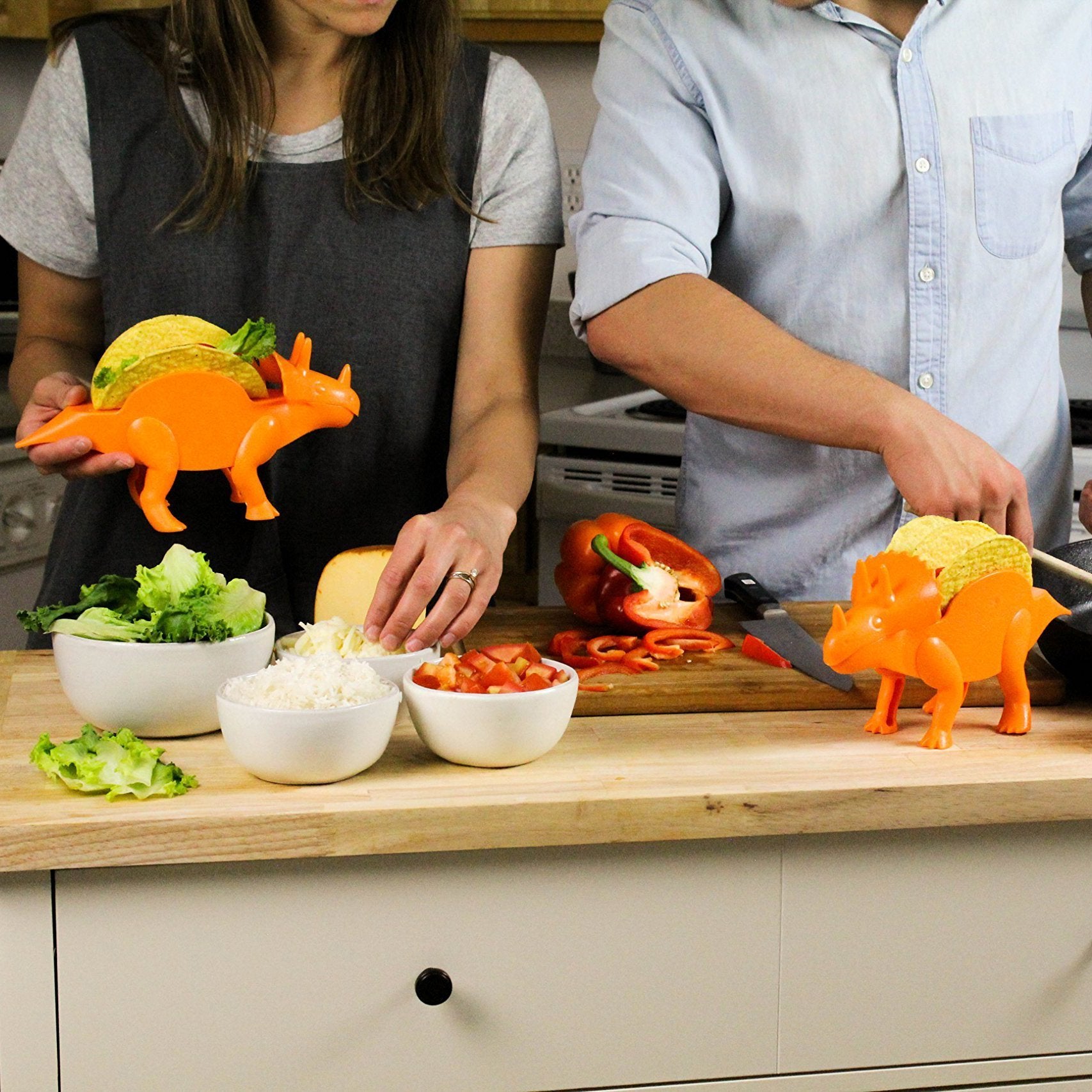 Turn your next Taco Tuesday into a DINOmite experience with our Dino Food Holder. Designed to keep your food upright and adorably presentable, each of these ultimate taco stands can hold 2-4 taco shells. This Triceratops-shaped food holder is the perfect, meal-time accessory to spark your imagination. Combine your love of food and your love of dinosaurs into one, fun, dinner-time adventure. It's great for holding burritos, sandwiches, hot dog buns, waffles and more.