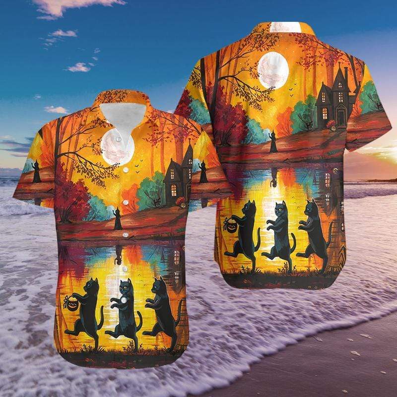 Halloween Walking Cat Hawaiian Shirt Funny Cat Summer Beach Unisex Shirt