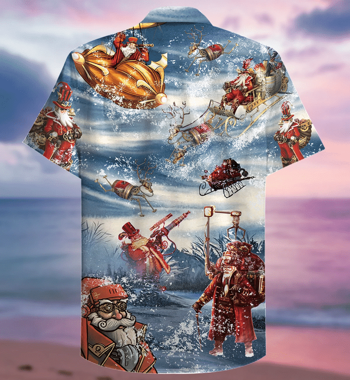 Merry Steampunk Christmas Hawaiian Shirt Santa Claus Short Sleeve Summer Aloha Shirt
