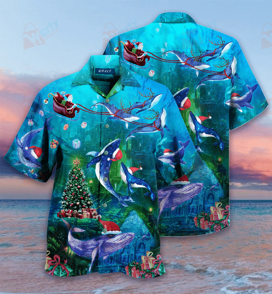 Christmas Whales Under The Sea Hawaiian Shirt Short Sleeve Summer Shirt Unique Beach Shirt