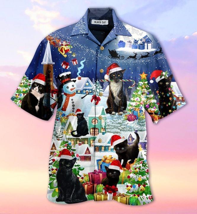 Merry Catmas Hawaiian Shirt Cat Lovers Gift Summer Vacation Unisex Beach Tee