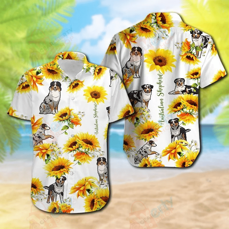 Australian Shepherd Sunflower Hawaiian Shirt Dog Gift For Fans Unique Beach Tee S-5XL