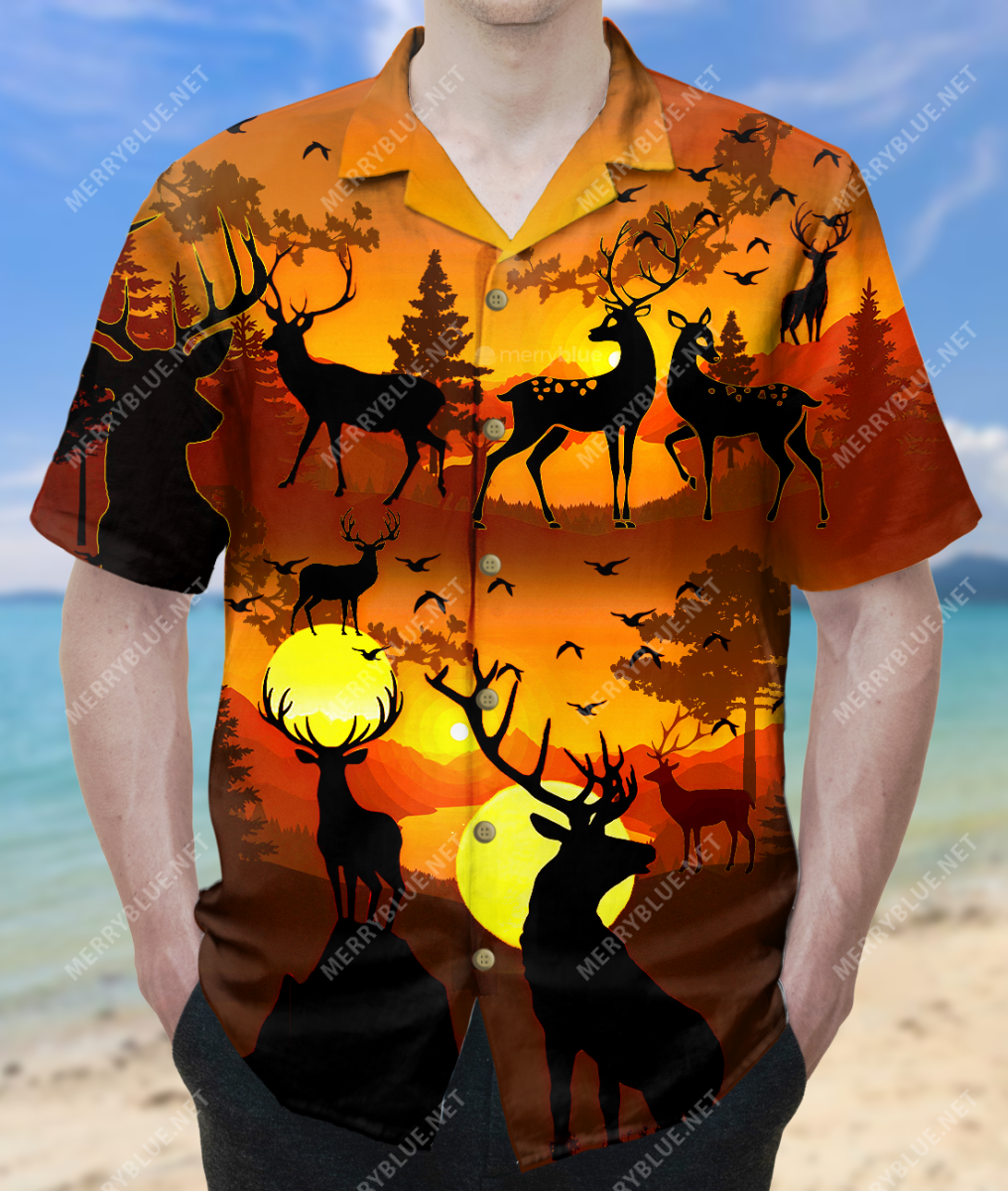 Amazing Deer In The Sunset Forest Unisex Hawaiian Shirt