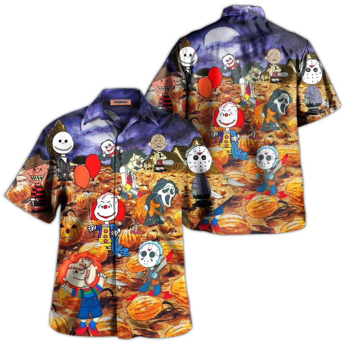 Horror Characters Halloween Hawaiian Shirt Creepy Pumpkin Vintage Unique Tee Lover Gift