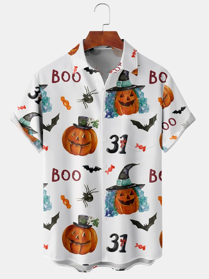 Halloween Pumpkin Print Casual Hawaiian Shirt Cute Pumpkin Funny Scary Vintage Unique Tee