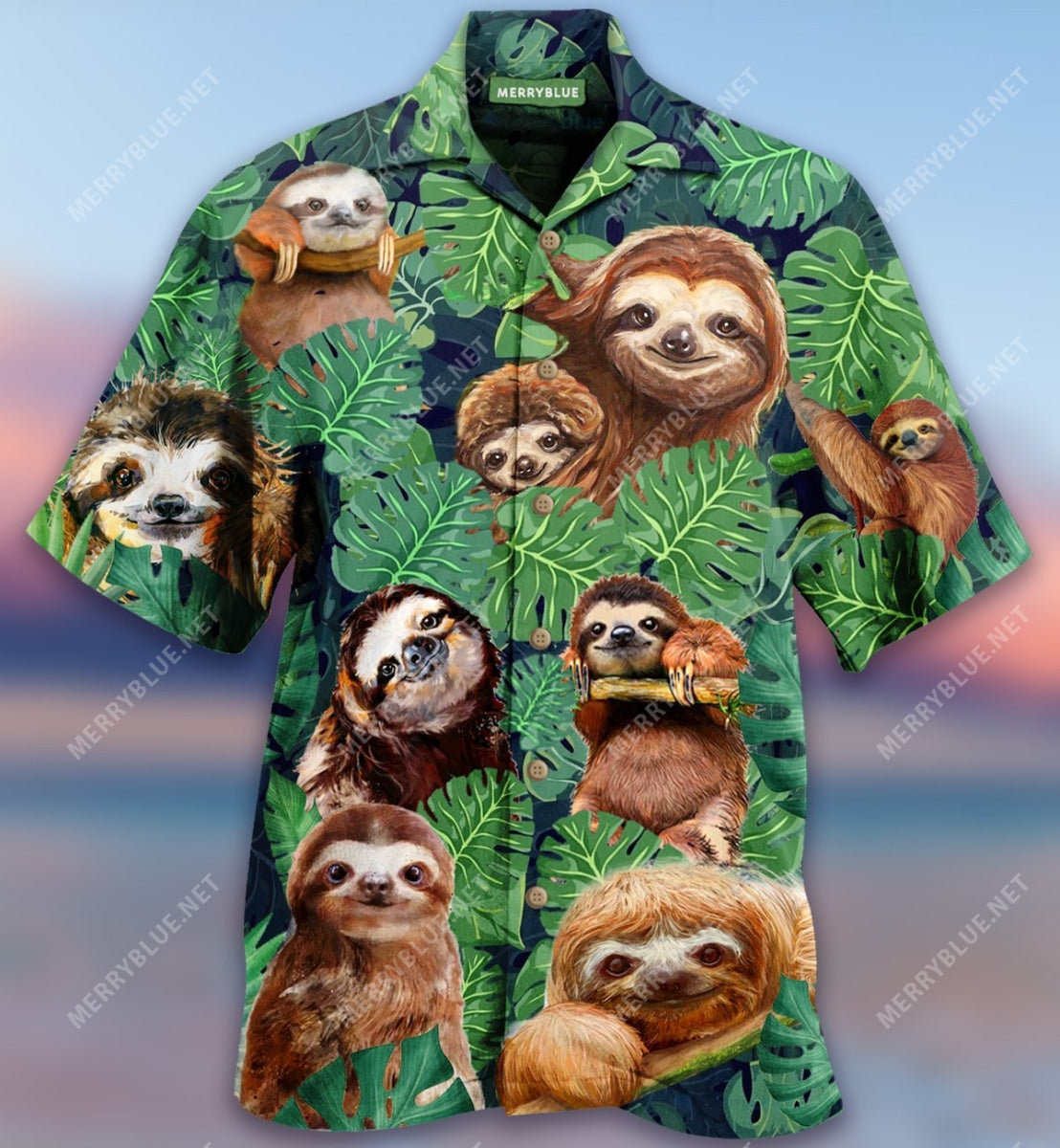 Sloths In The Jungle Unisex Hawaiian Shirt Cutie Animal Tropical Palm Tree Beach Shirt