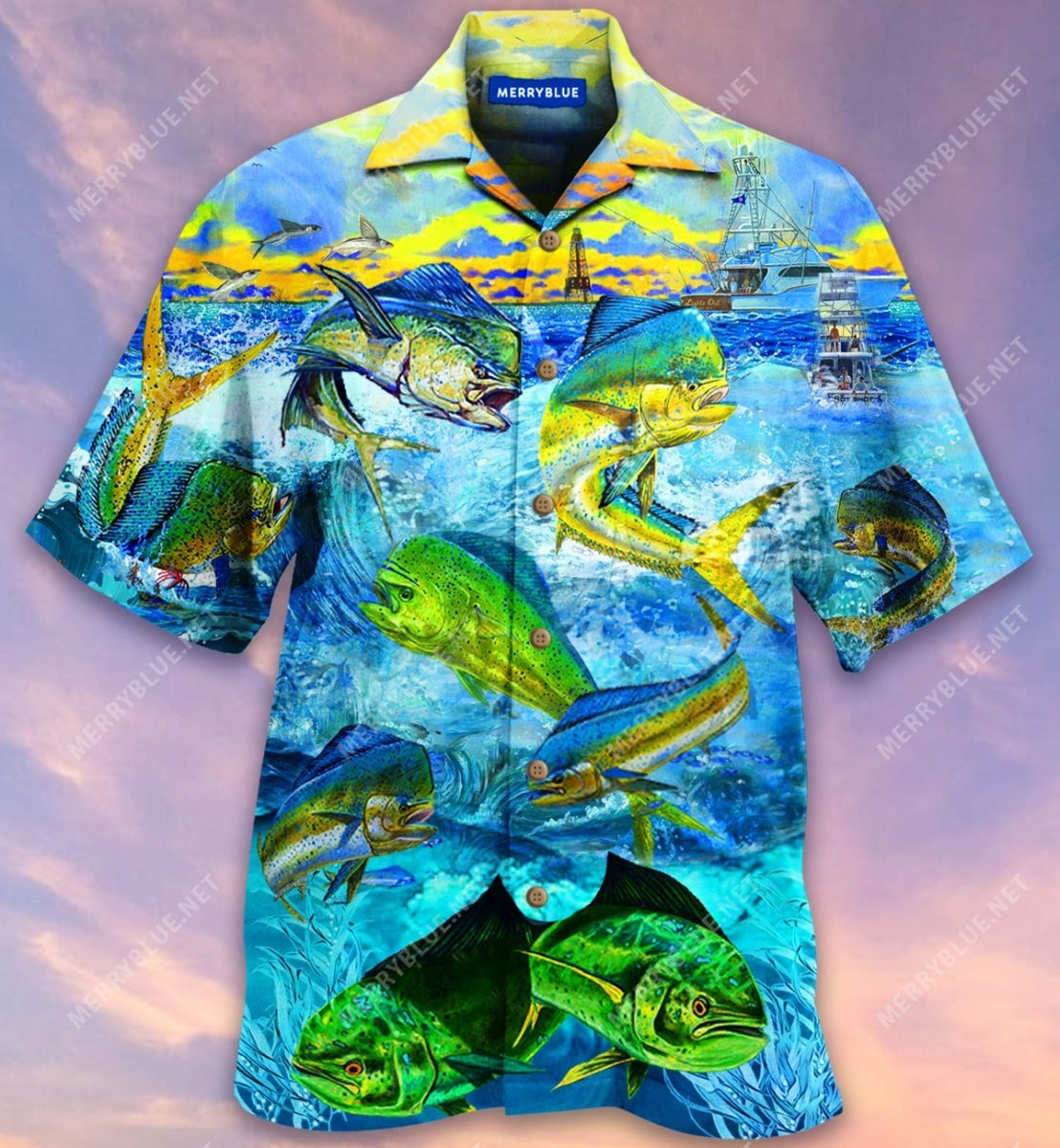 Go Fishing Mahi-Mahi Fish On The Ocean Unisex Hawaiian Shirt Unique Beach Tee Short Sleeve