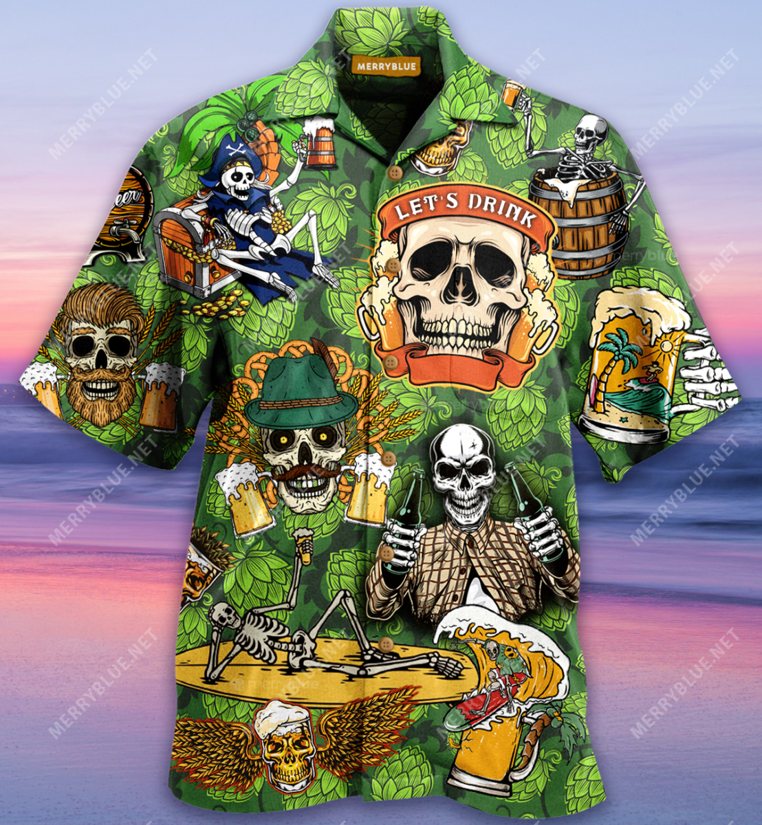 It'S Beer Time Unisex Hawaiian Shirt Skeleton Funny Tropical Summer Trip