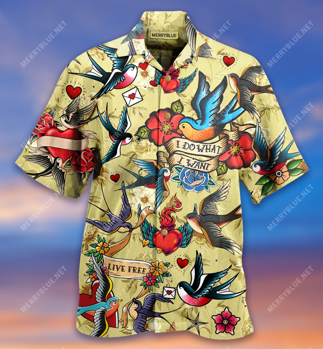 Live Free Like Birds Unisex Hawaiian Shirt Vintage Tropical Summer Beach Shirt