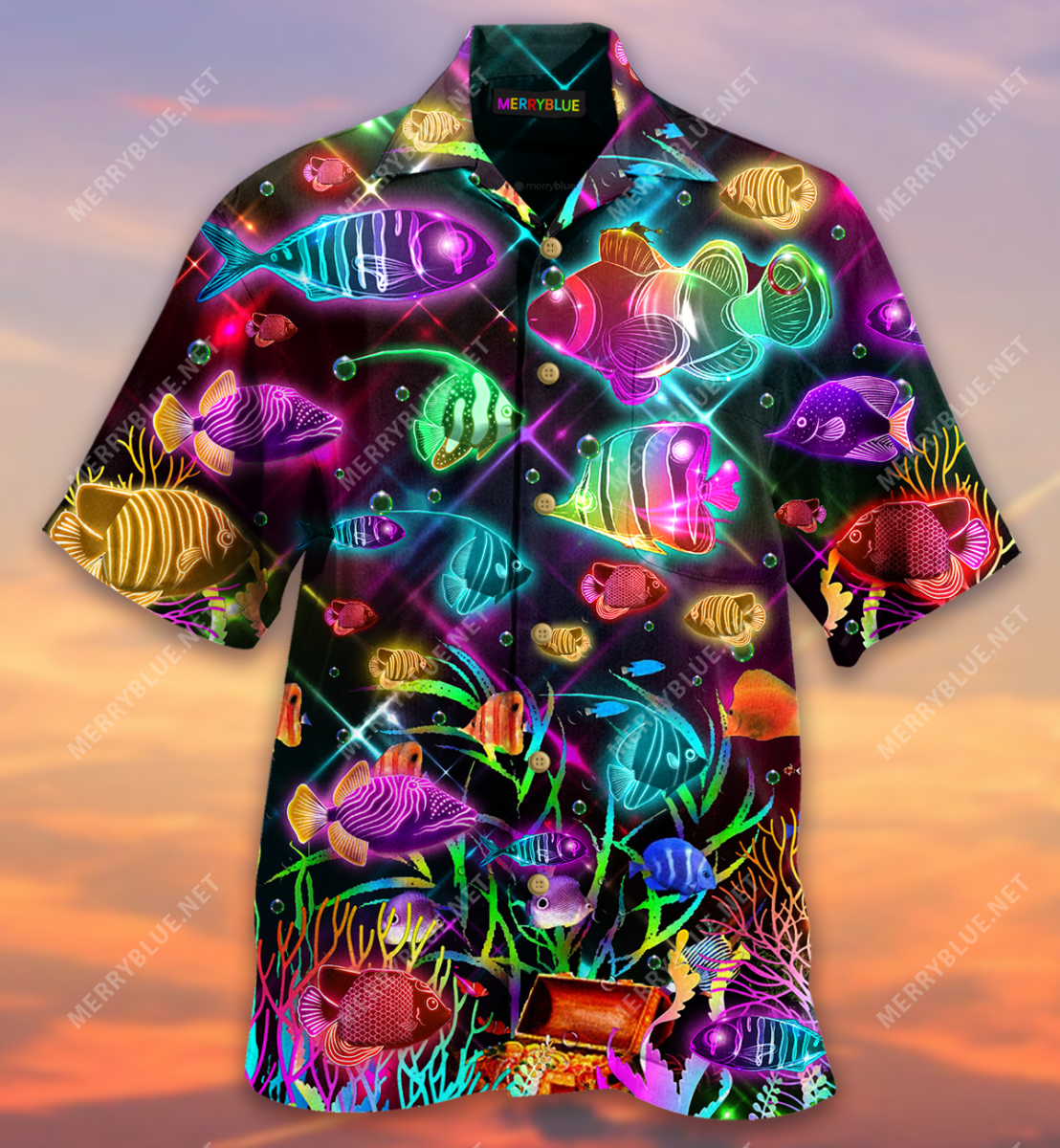 Even Small Fish Are Fish Unisex Hawaiian Shirt Colorful Neon Fish Lover Summer Shirt