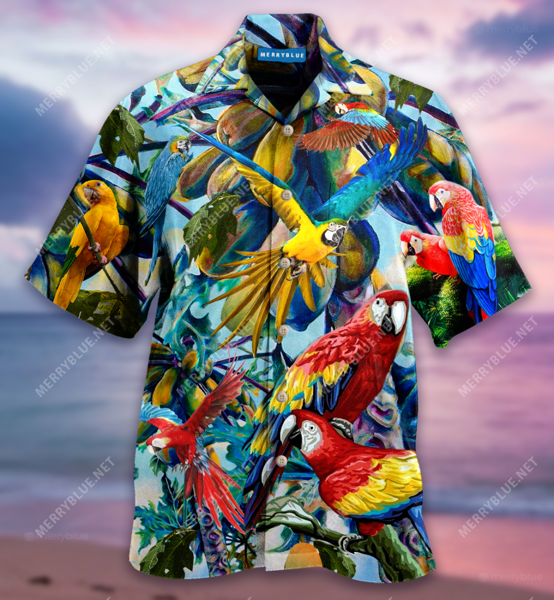 Parrot Really Likes Papaya Unisex Hawaiian Shirt Colorful Animal Unique Beach Tee S-5XL
