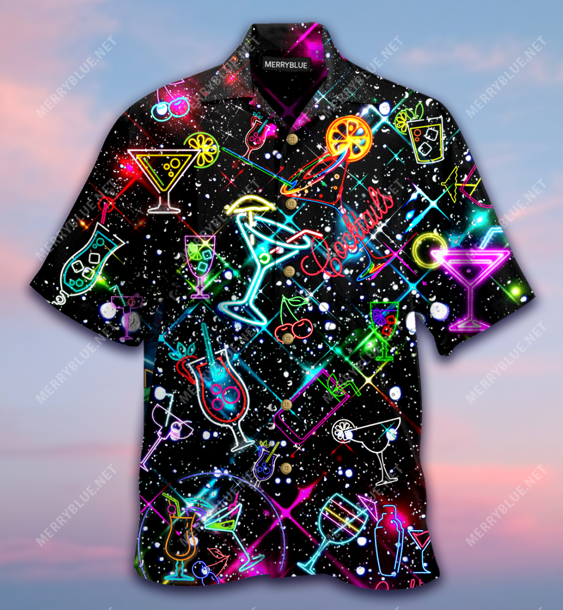 Drinking Cocktail Feeling Free Unisex Hawaiian Shirt Sparkling Pattern Neon Shirt Summer Tee Gift
