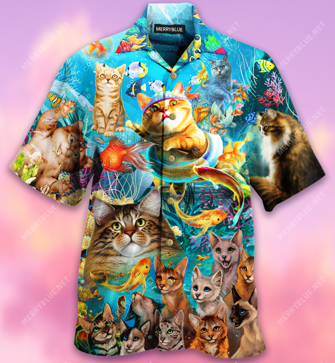 Cats Catch Fish Like Pros Unisex Hawaiian Shirt Cat Gift Funny Design Summer Beach Shirt