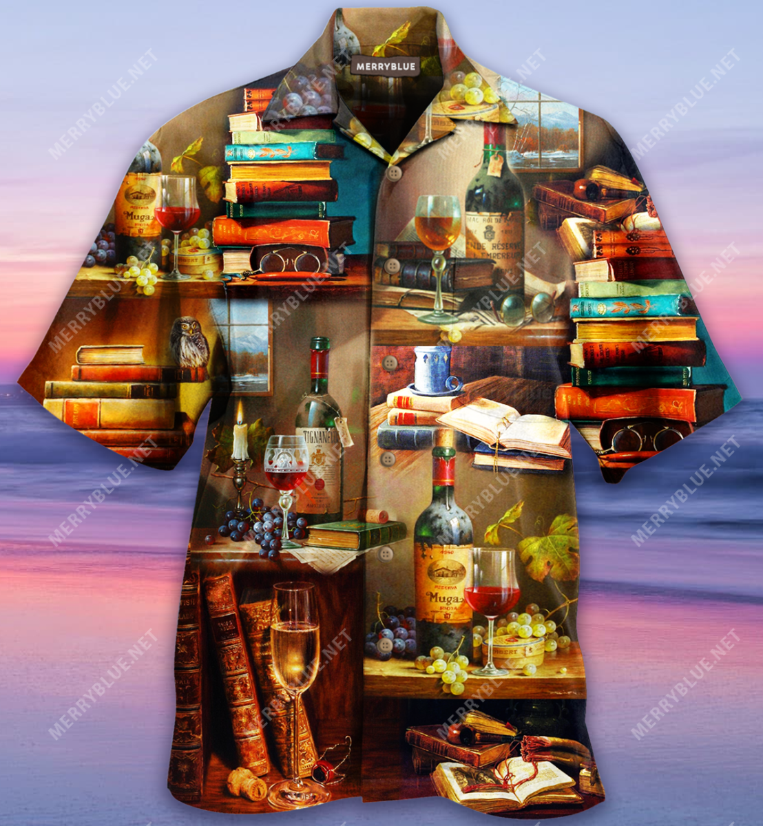 Books And The Smell Of Fine Drink Unisex Hawaiian Shirt Short Sleeve Tee Gift