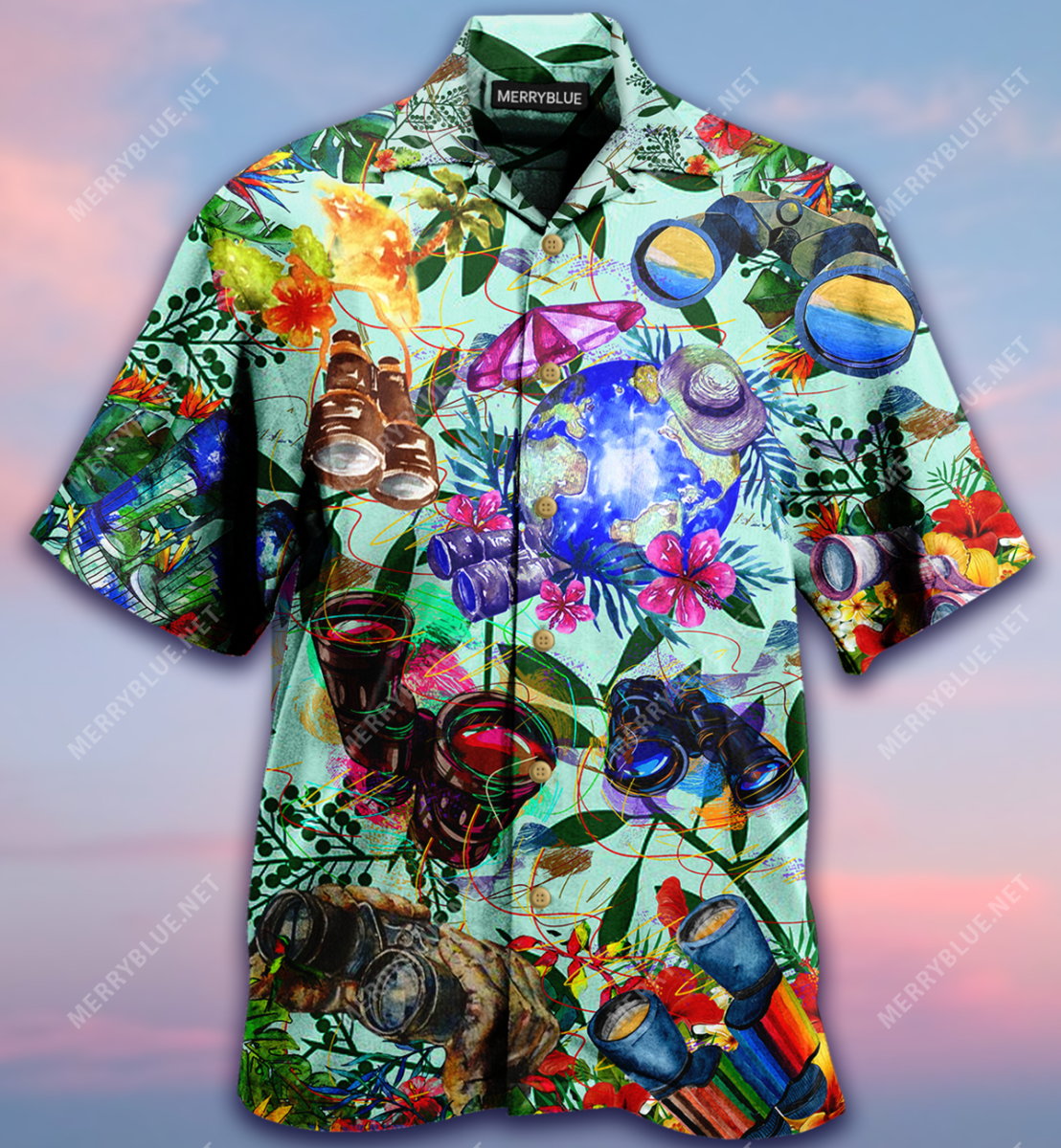 Travelling Through Binoculars Unisex Hawaiian Shirt Summer Beach Tee Gift S-5XL