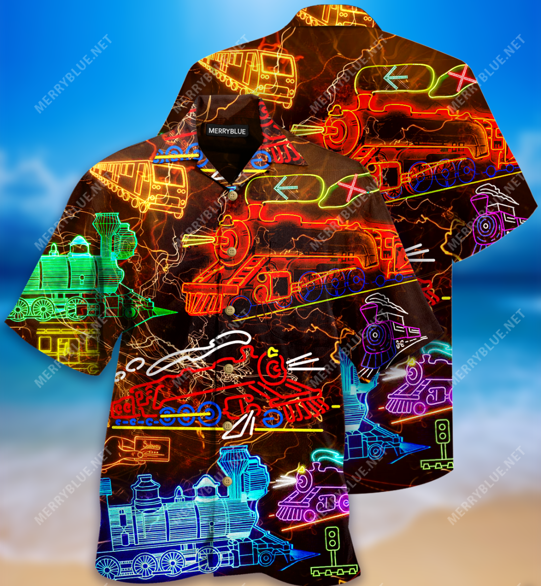 Life Is Better On A Train Unisex Hawaiian Shirt Neon Colorful Design Unique Tee Gift S-5XL