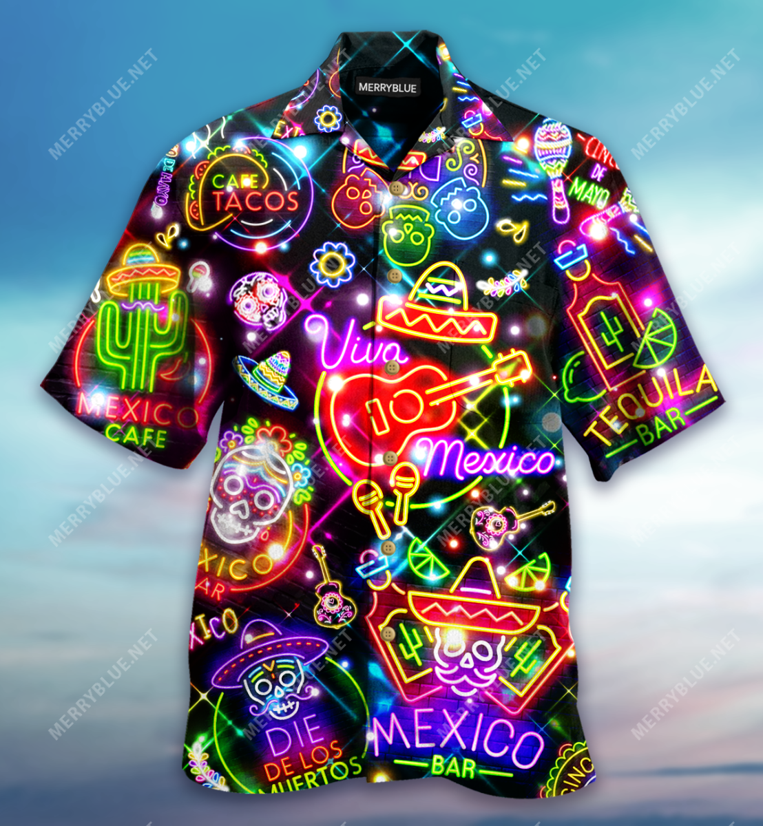 Neon Mexico Unisex Hawaiian Shirt Colorful Design Summer Beach Tee Gift S-5XL