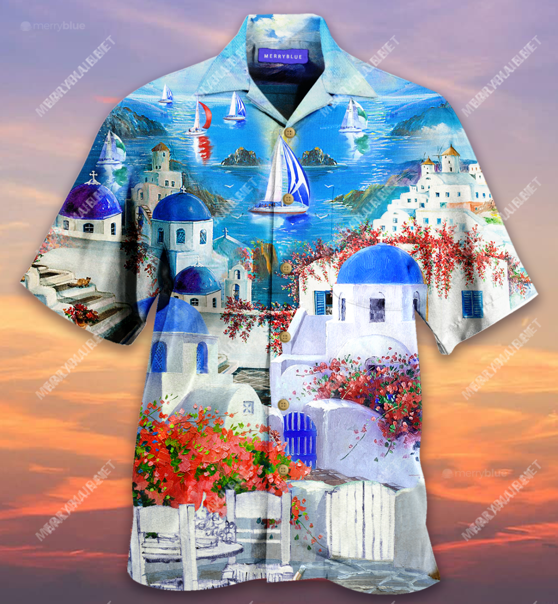 Blue Greece Beaches Unisex Hawaiian Shirt Amazing Background Aloha Shirt For Men
