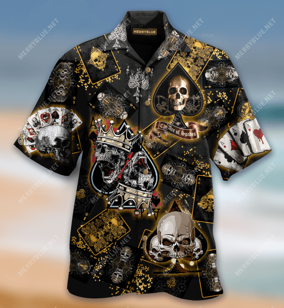 Dangerous Skull Poker Unisex Hawaiian Shirt Black Skeleton Summer Beach Shirt