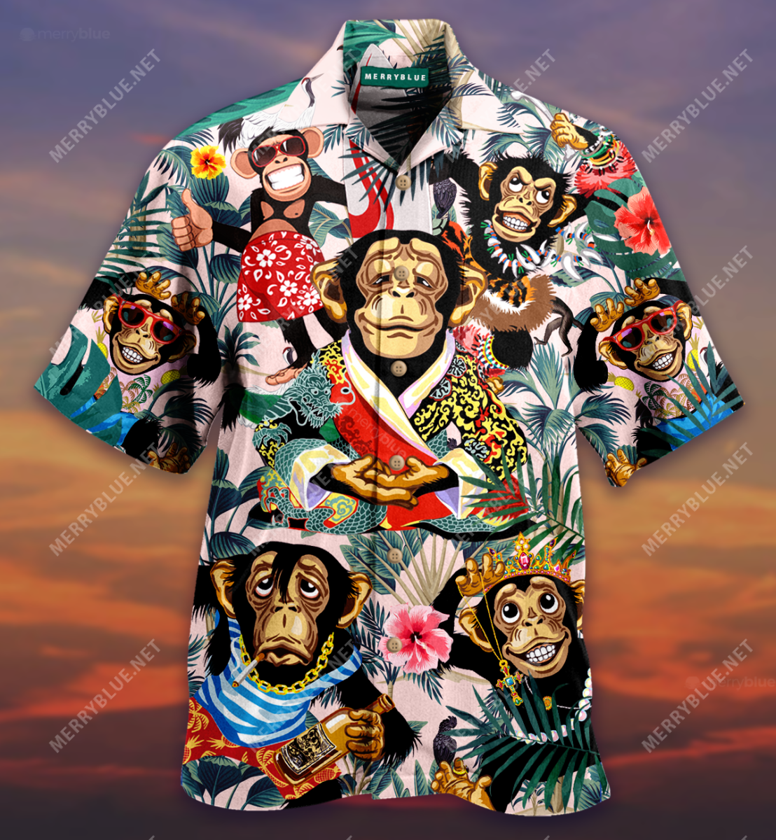 Smile Like A Monkey Unisex Hawaiian Shirt Funny Animal Climbing Summer Vacation Tee Short Sleeve