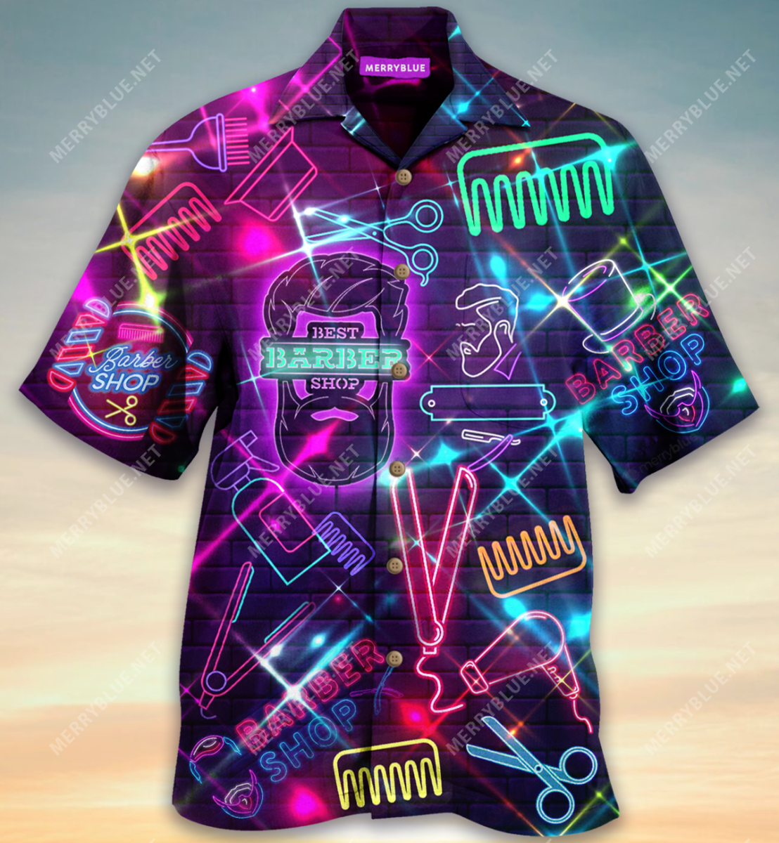 Look Into Neon Barber Shop Unisex Hawaiian Shirt Beach Summer Shirt Tee Unisex S-5XL