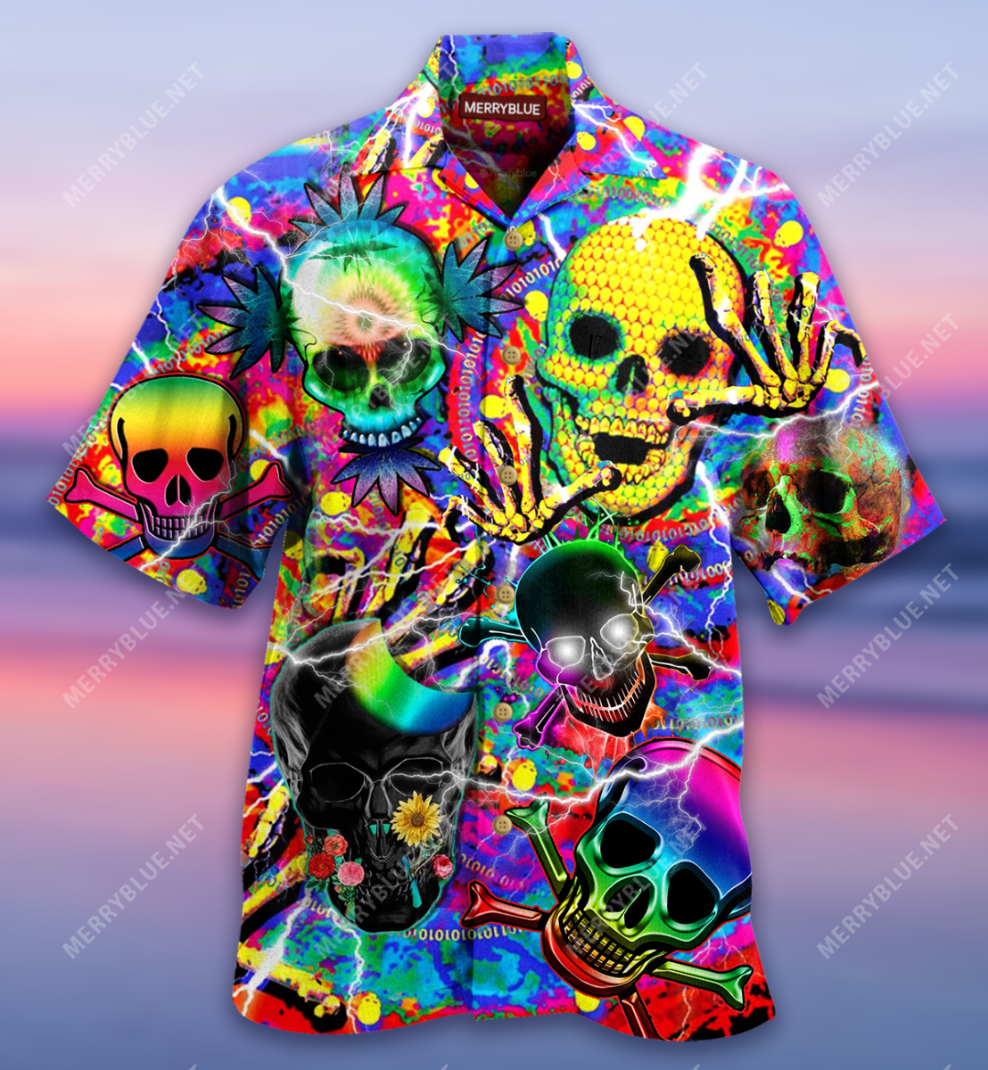 Skull Sweet Skull Unisex Hawaiian Shirt Neon Unique Design Beach Tee S-5XL