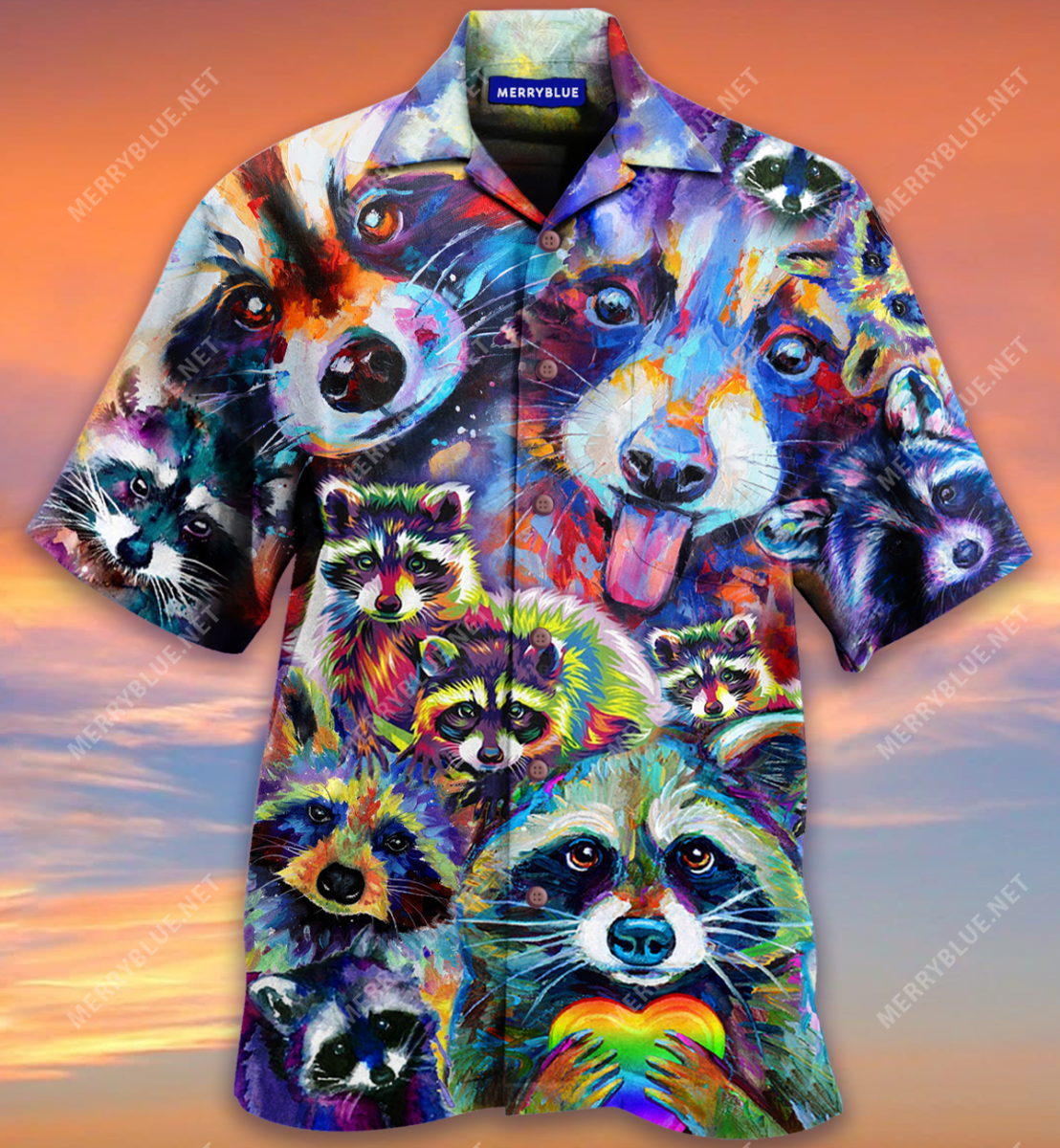 Awesome Colorful Raccoon Family Unisex Hawaiian Shirt Fabulous Animal Lover Summer Vacation Shirt