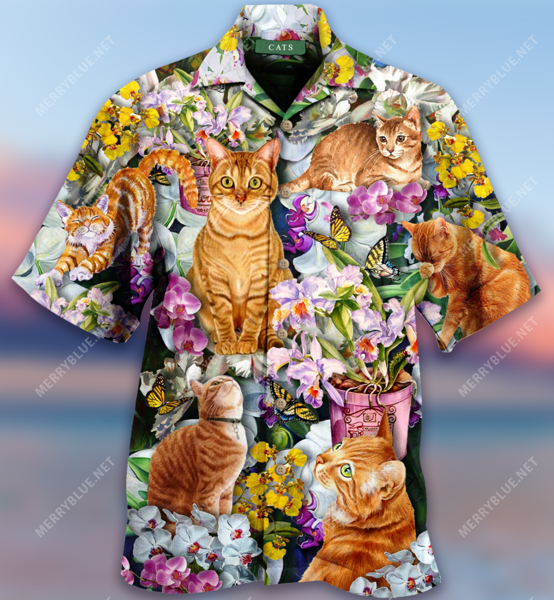 Cats And Queen Of Flower Unisex Hawaiian Shirt