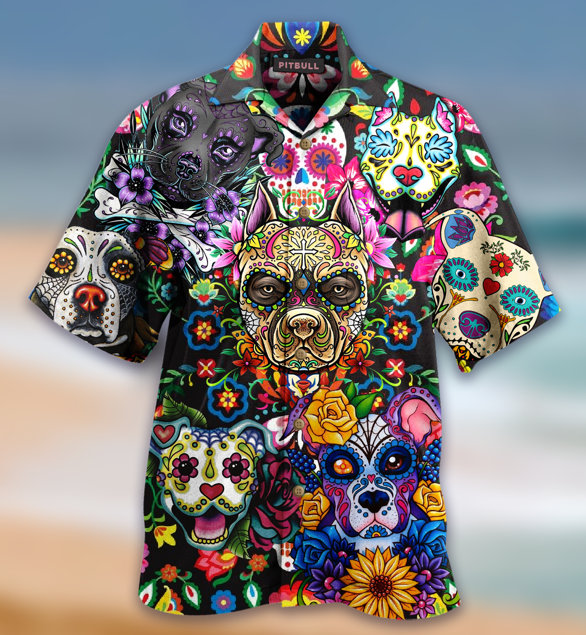 Pit Bulls Dogs Flower Pattern Hawaiian Shirt