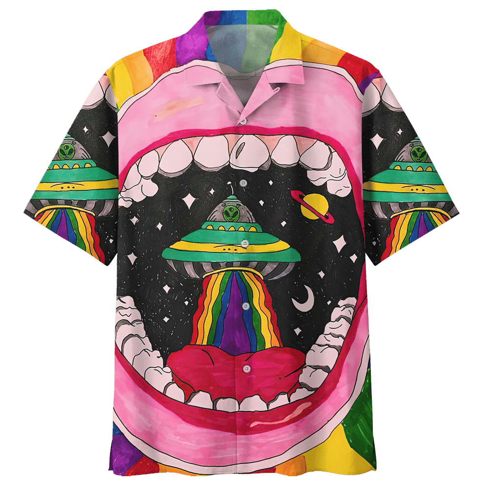 Hippie Mouth Alien UFO Aloha Hawaiian Shirt Summer Beach Shirt Unisex