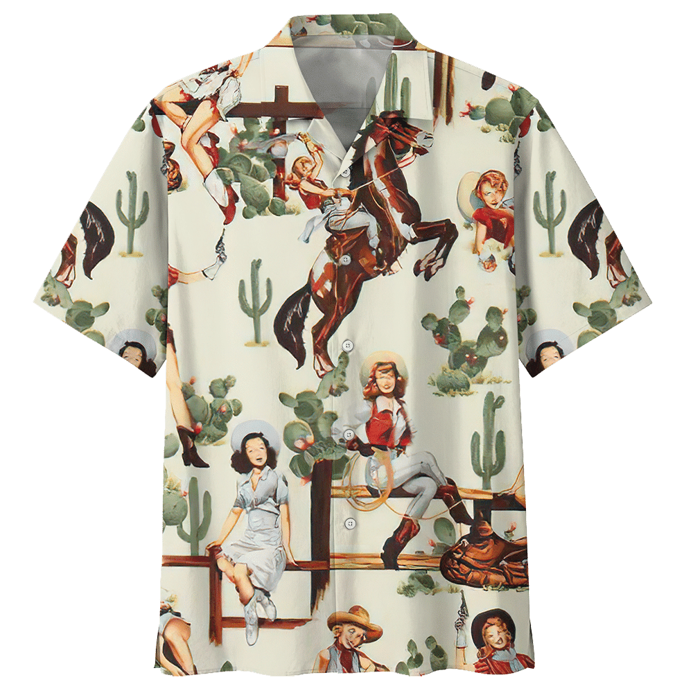 Cowboy Girl Riding Horse Cactus Aloha Hawaiian Shirt Summer Beach Shirt Unisex