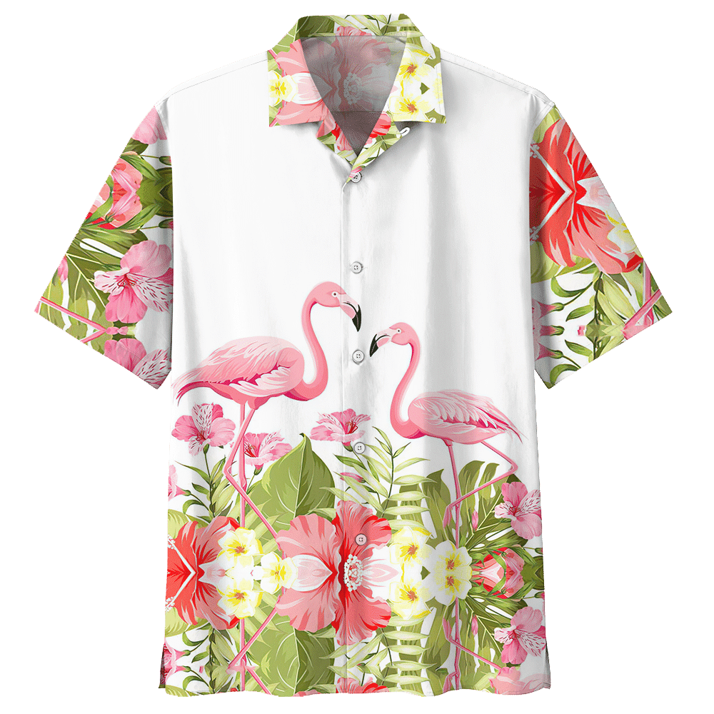Couple Flamingo Tropical Flower Aloha Hawaiian Shirt Summer Beach Shirt Unisex