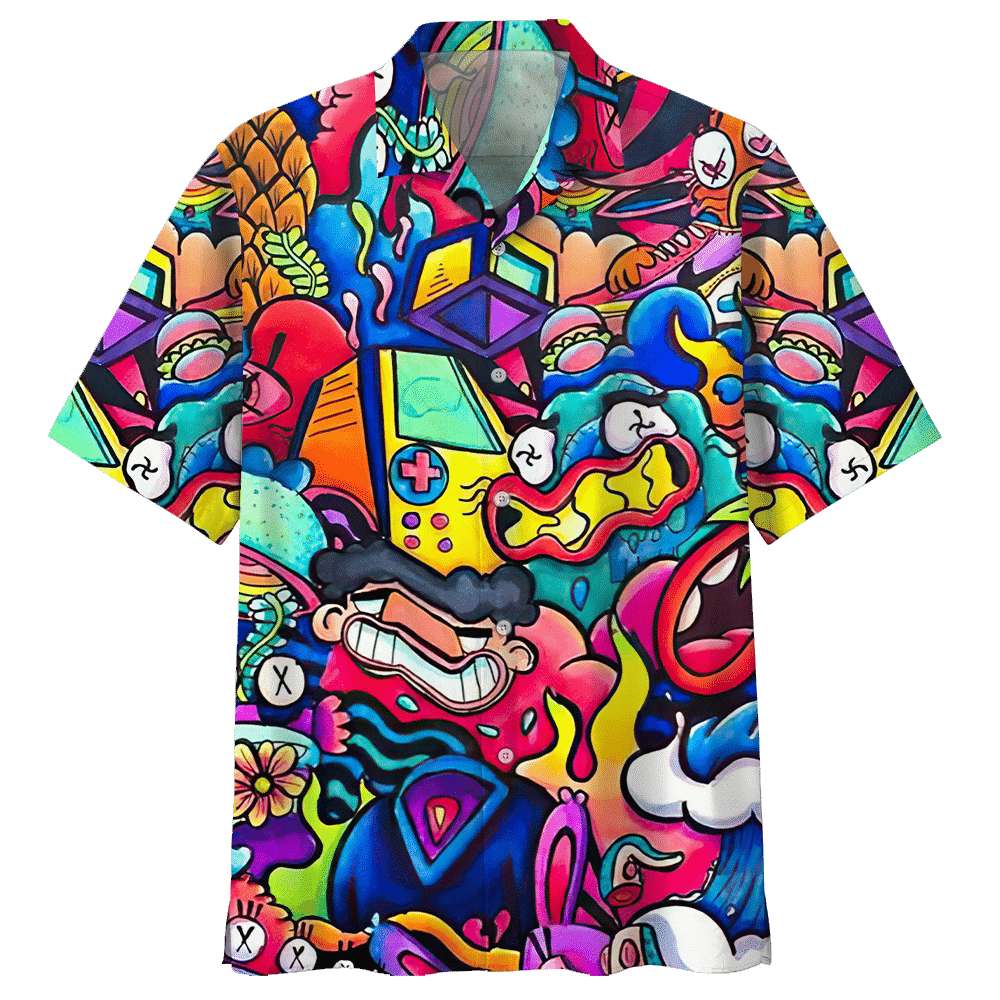 Hippie Funny Cartoon Aloha Hawaiian Shirt Summer Beach Shirt Unisex