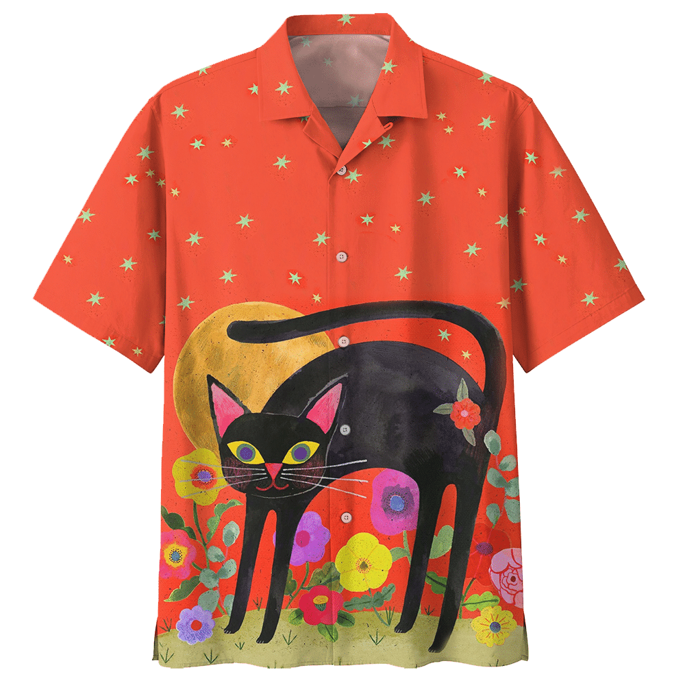 Flower Moon Cat Aloha Hawaiian Shirt Summer Beach Shirt Unisex