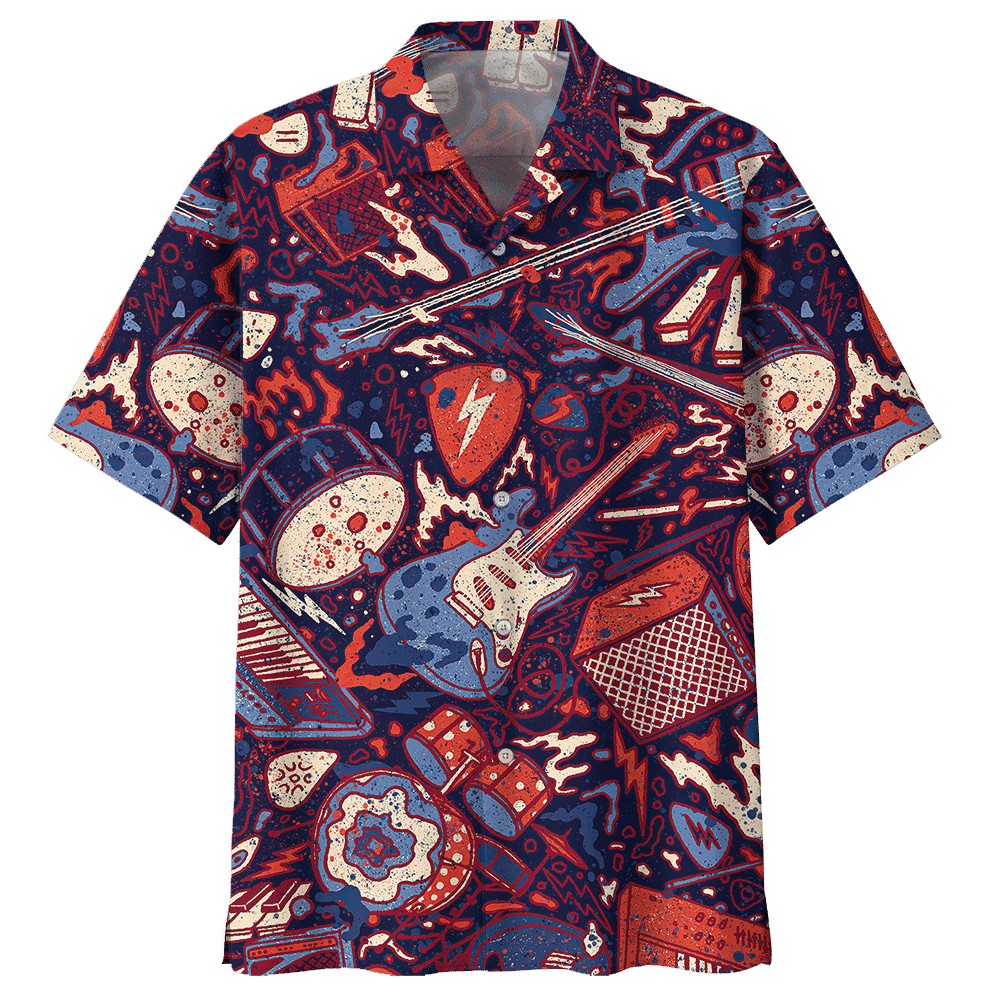 Drum Guitar Aloha Hawaiian Shirt Summer Beach Shirt Unisex